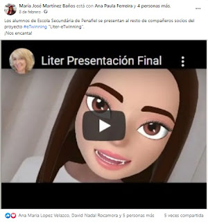 Cada actividad del proyecto Liter-eTwinning, además de en Twinspace, ha sido publicado en el blog del proyecto con el fin de difundir el enlace de la publicación por los distintos grupos de Whatsapp y Telegram de las familias del colegio, así como en el Facebook de las maestras participantes que han sido etiquetadas, Facebook de los centros educativos, compartir dicha publicación en los distintos grupos de Facebook de eTwinnning...